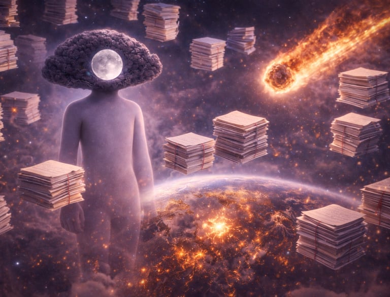 Mudda (Momila) / Issues exist! They’ve been around since the existence of Pumans in the PATHARLY REALM. Yes, the deep search for “Poower”, the search for the GREAT FATHER, someone who can hand over the magic stick so they can leave a lasting IMPRINT in their neighbours’ brains before departure, so people can do their JAI HO. Yes, Mudda are there! Mudda to destroy something so intensely that people remember it for generations and FEEL FEAR. Yes, Muddas are there, the RESTLESSNESS, the KHAPITARs constantly doing KHIT-KHIT, THUK-THOK, BIT-BYTE, so one can recognize their PRESENCE. They are here. Yes, they’re around, watching from BALLILLY PELISCOPE, wanting to track and claim by hook or crook, cry or fry, lick or sick.